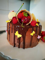 wunderschöne kleine Torte mit Erdbeerfruchtfüllung und Schoko-Ganache