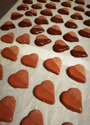 eine andere Möglichkeit ist die Füllung mit Kuvertüre zu überziehen