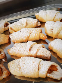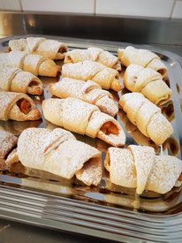 sooo unglaublich lecker .... Der Teig ist locker und fluffig, die Äpfel werden mit dem Zimt eingekocht, anschliessend wird gefüllt, geformt und gebacken. Zum Schluss mit Puderzucker bestäubt.